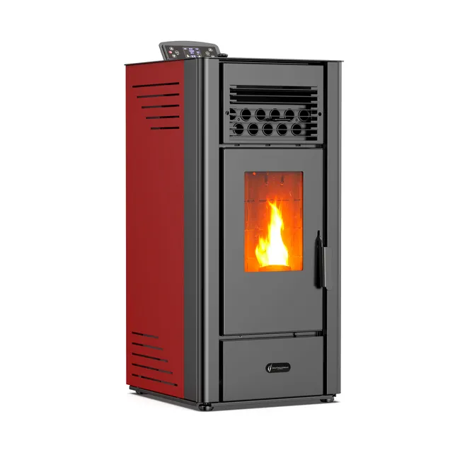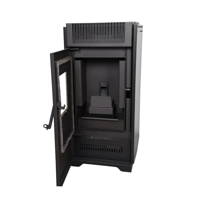 Doble combustión, aire ventilado, dimensiones compactas, fácil mantenimiento, programable, crisol de fundiciónsensor ambiental integrado, muy silencioso, bandeja de ceniza extraíble, salida de humos trasera.
